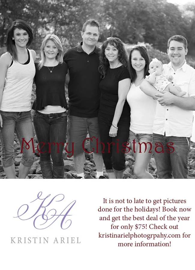 It's Christmas time! I have a present for everyone in the Delaware, Maryland, Pennsylvania and DC area! For only $75 you can get your Christmas cards done and ready to send to your loved ones in time! There are a number of designs you can choose from can even some colors! Book now this deal is only good till November 16!